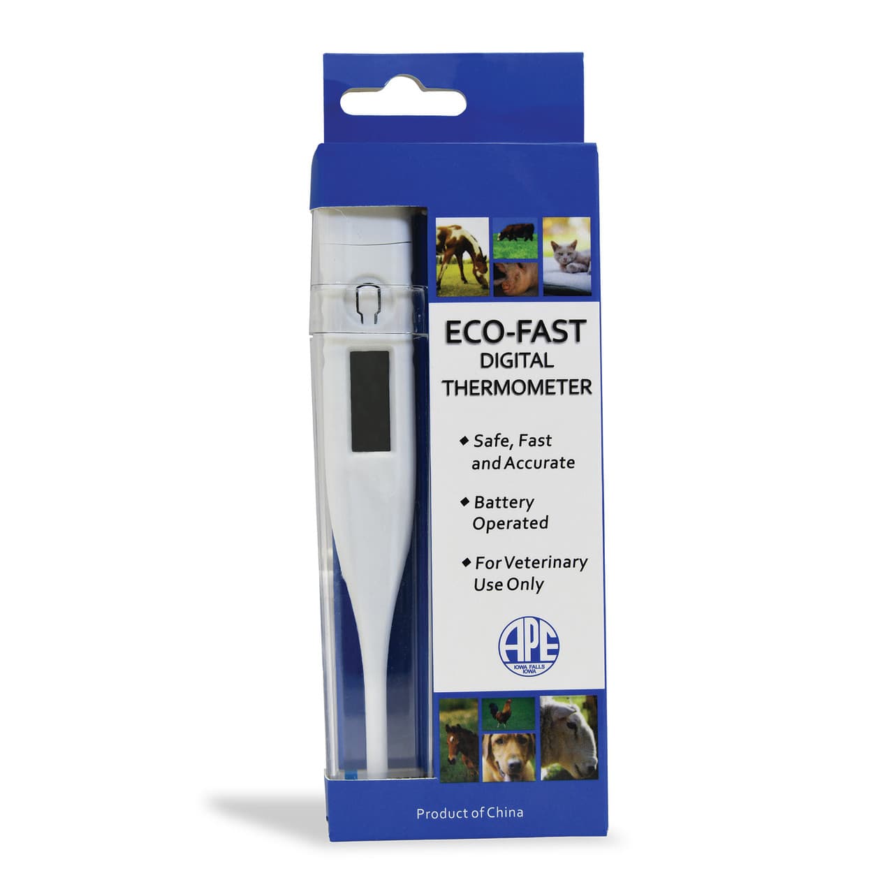 Digital Thermometer reads your pet's temperature within 60 seconds. Reads temperature after 20 seconds. Has an easy-to-read liquid crystal display; is water and break resistant and features auto-shutoff. For rectal use. Complete with battery and storage case. Label may be different than shown.